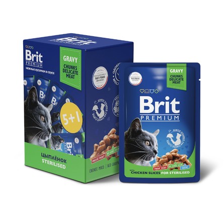 BRIT PREMIUM, Набор паучей для стерилизованных кошек, Цыпленок в соусе, 5+1, 85г, 5055128