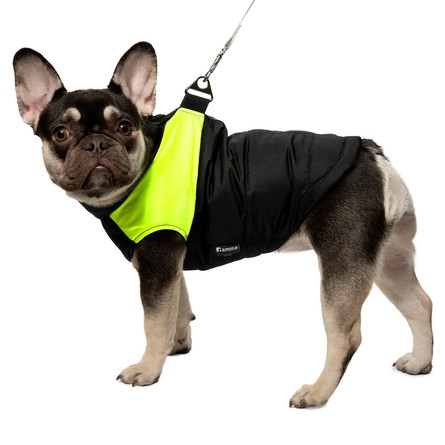 Удобный и функциональный жилет "Неон" выполнен из водоотталкивающей и ветронепроницаемой ткани, которая защитит питомца от холода и грязи. Застежка-молния на спине максимально облегчает одевание питомца, а два кольца для крепления поводка позволяют обойтись без дополнительной амуниции. Контрастная расцветка изделия сделает собаку яркой и заметной на улицах города. Размер: длина спины 340 мм, обхват груди 450 мм. Цвет: чёрно-желтый.
