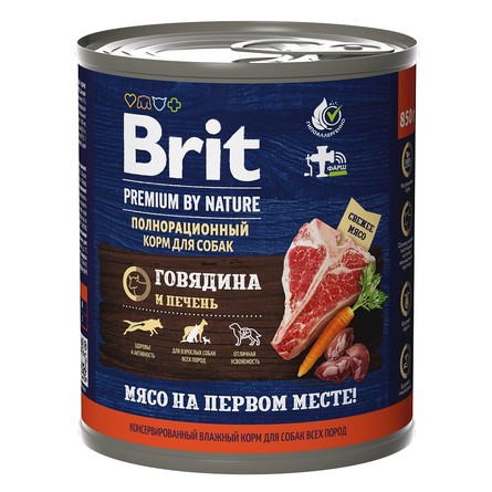BRIT PREMIUM BY NATURE, Консервы с говядиной и печенью для взрослых собак всех пород, 850г, 5051151