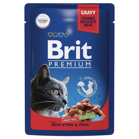 Нежные кусочки мяса с сочным горошком в ароматном соусе — идеальное сочетание для полноценного и сбалансированного рациона. Паучи Brit Premium однозначно заинтересуют вашу кошку и станут для нее любимым блюдом. Влажный корм содержит все необходимые витамины и минералы, которые необходимы питомцу. Таурин в составе — важный ингредиент для поддержания остроты зрения и здоровья сердечно-сосудистой системы кошек.