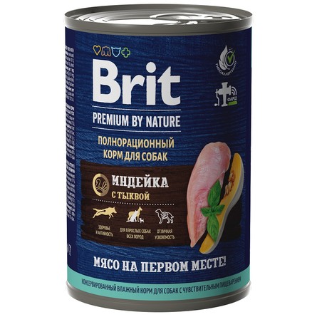 BRIT PREMIUM BY NATURE, Консервы с индейкой и тыквой для взрослых собак всех пород, 410г, 5051106