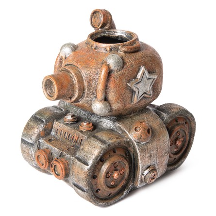 Направление научной фантастики - стим-панк - вдохновил наших дизайнеров создать для вас серию аквариумных декораций с его характерными признаками: листовая медь с огромными заклепками, подчеркнуто неуклюжие формы. Любителям необычного оформления аквариумов будет интересно создать у себя мрачную атмосферу постапокалиптического будущего в параллельной реальности, где вместо электричества и нефти использовался пар. Декорации изготовлены из нетоксичной полиэфирной смолы, очень прочные и долговечные, удобные в эксплуатации и совершенно безвредные для аквариумных жителей, они прослужат вам долгие годы, и будут украшать собой ваш "компактный подводный мир" - на радость вам и его обитателям.