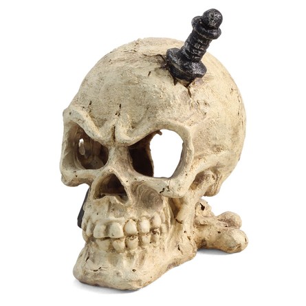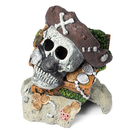 Этот реалистичный грот в виде черепа пирата - незаменимый элемент для оригинального оформления очень маленьких пресноводных аквариумов ("нано-аквариумов"). Используя этот грот вместе с другими из серии "Кладоискатели", можно создать в аквариуме историю поиска пиратских сокровищ и затонувших кораблей. Изготовленный из нетоксичной полиэфирной смолы, очень прочный и долговечный, удобный в эксплуатации и совершенно безвредный для аквариумных жителей, этот грот прослужит вам долгие годы, украшая собой ваш "компактный подводный мир" - на радость вам и его обитателям.