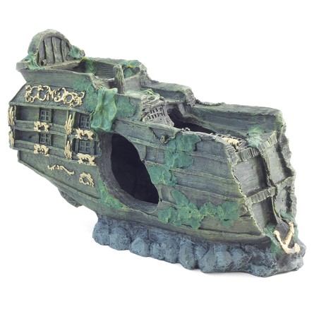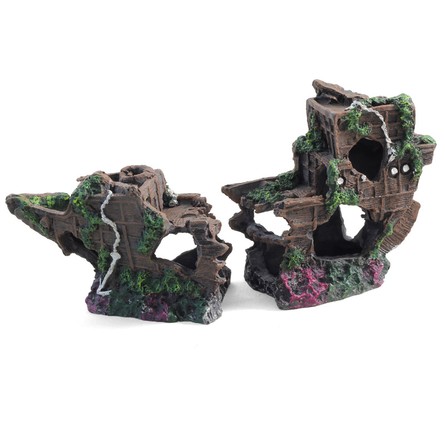 Этот функциональный и максимально реалистичный грот из двух частей в виде затонувшего средневекового корабля - незаменимый элемент для оригинального оформления любых пресноводных или морских аквариумов. Этот грот послужит дополнительным укрытием для небольших рыб, отвечая тем самым не только за эстетику, но и принося обитателям аквариума реальную пользу. Такой грот может быть использован как самостоятельный элемент декора - для оформления небольшого аквариума, так и в комплекте с другими гротами, объемными фонами и искусственными растениями - для оформления аквариума большого объема. Изготовленный из нетоксичной полиэфирной смолы, очень прочный и долговечный, удобный в эксплуатации и совершенно безвредный для аквариумных жителей, этот грот прослужит вам долгие годы, украшая собой ваш "компактный подводный мир" - на радость вам и его обитателям.