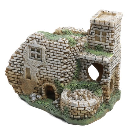 Этот функциональный и максимально реалистичный грот, стилизованный под разрушенную средневековую крепость - незаменимый элемент для оригинального оформления любых пресноводных аквариумов. Этот грот послужит дополнительным укрытием для небольших рыб, отвечая тем самым не только за эстетику, но и принося обитателям аквариума реальную пользу. Такой грот может быть использован как самостоятельный элемент декора, так и в комплекте с другими гротами, объемными фонами и искусственными растениями - для оформления аквариума большого объема. Изготовленный из нетоксичной полиэфирной смолы, очень прочный и долговечный, удобный в эксплуатации и совершенно безвредный для аквариумных жителей, этот грот прослужит вам долгие годы, украшая собой ваш "компактный подводный мир" - на радость вам и его обитателям.