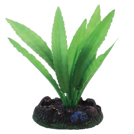 Растения - это не только завершающий штрих в оформлении, но и необходимый атрибут любого аквариума. Они придают трехмерность внутреннему пространству аквариума, а также служат дополнительным укрытием для небольших рыб, отвечая тем самым не только за эстетику, но и принося обитателям аквариума реальную пользу. Неоспоримое преимущество искусственных растений в том, что в них не заводятся паразиты и грибки, их легко мыть и дезинфицировать, и прослужат они неизмеримо дольше, чем живые растения. Изготовленное из ткани, растение для аквариума с тяжелой керамической подставкой "Апоногетон" подойдет для оформления любых типов пресноводных аквариумов.