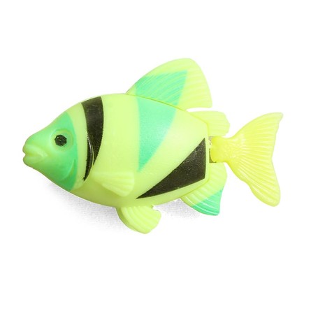 Декоративная рыбка из силикона с люминофором, имитация живых рыбок. Легкие рыбки крепятся ко дну аквариума с помощью присоски и тонкой лески. В течение светового дня люминофор накапливает энергию, которую затем постепенно начинает отдавать в темноте, создавая таинственное свечение.