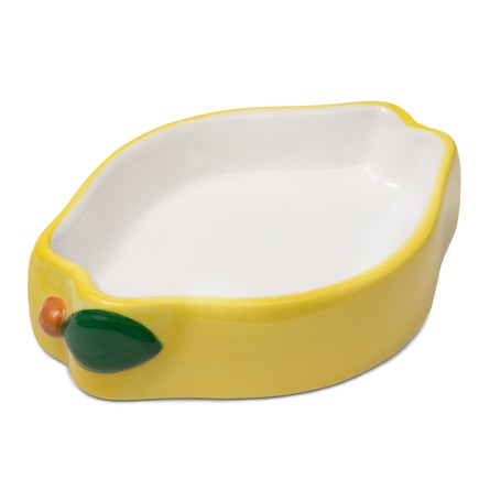 Стильная и функциональная миска для мелких животных выполнена из высококачественной керамики яркой расцветки. Такая миска идеально подойдет как для воды, так и для корма любой консистенции. Она комфортна для питомца и легко моется под струей проточной воды с использованием моющих бытовых средств. А оригинальный дизайн в виде лимона позволит ей стать украшением любого интерьера. Цвет: желто-белый. Размер: 140*100*35мм. Объем 0,1л.
