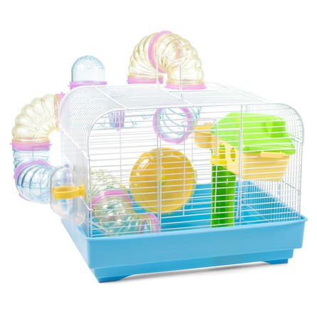 Яркая трехэтажная клетка прямоугольной формы - целый развлекательный комплекс для грызуна, который занимает немного места и отлично подходит для мелких домашних животных вроде крыс, мышей и хомяков. В комплектацию изделия также входят: пластиковая миска, поилка с носиком, уютный домик, труба-тоннель и беговое колесо. Кроме того, клетка оборудована удобной ручкой на крыше, облегчающей процесс переноски изделия. Размер изделия: 400х260х530мм.