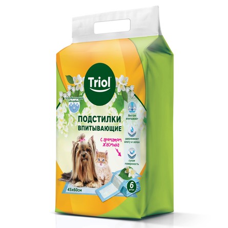 Подстилки впитывающие с ароматом жасмина, 450*600мм (уп.6шт.), Triol