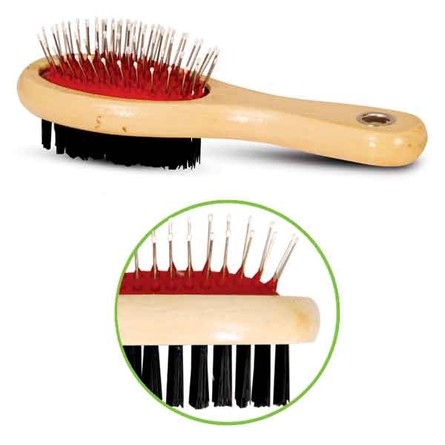 Удобная двустороняя щетка прямоугольной формы с деревянной ручкой обеспечивает нежный уход за верхним и базовым слоем шерсти животного. Нейлоновая щетина с одной стороны и металлическая с наконечниками с другой идеально подходят для питомцев с любым типом шерсти. Размер изделия: 180х55х60мм. Упаковка: блистер.
