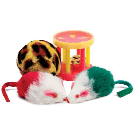Этот набор из четырех ярких игрушек - отличный вариант для активной и разнообразной игры с пушистыми питомцами. В комплект входят: 2 меховые мыши (45х24х21/105мм); мяч тканевый (d40мм); пластиковый барабанчик с колокольчиком внутри (d41х40мм). С такими игрушками маленькие котята хорошо развиваются, а взрослые животные - держат себя в тонусе и оттачивают охотничьи навыки. Набор упакован в прозрачный пакет в клапаном.