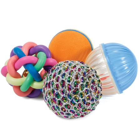Этот набор из четырех ярких игрушек - отличный вариант для активной и разнообразной игры с пушистыми питомцами. В комплект входят: мяч-погремушка (d45мм), мяч-зернистый (d40мм), мяч-дождик (d40мм), мяч мягкий из полиуретана (d35мм). С такими игрушками маленькие котята хорошо развиваются, а взрослые животные - держат себя в тонусе и оттачивают охотничьи навыки. Набор упакован в блистер.