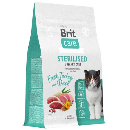Полнорационный сухой корм суперпремиум-класса с индейкой и уткой для стерилизованных кошек. Профилактика МКБ. Стерилизованные кошки склонны к появлению мочекаменной болезни. Для предотвращения образования струвитных камней важно регулировать pH-баланс выделительной системы. Преимущества корма: • Индейка — естественный источник L-триптофана, гормона счастья • DL-метионин поддерживает здоровье мочевыдели тельной системы • Жирные кислоты из натуральных источников для красоты шерсти и здоровья кожи • Свежее мясо для активности в течение дня • Витамины, минералы и антиоксиданты для поддержки иммунитета питомца • Растворимые и нерастворимые пищевые волокна для здорового пищеварения и микрофлоры кишечника.