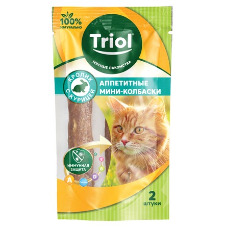 Лакомство для кошек «Аппетитные мини-колбаски из кролика с курицей», 7г (уп.2шт./шоу-бокс 60уп.), Triol