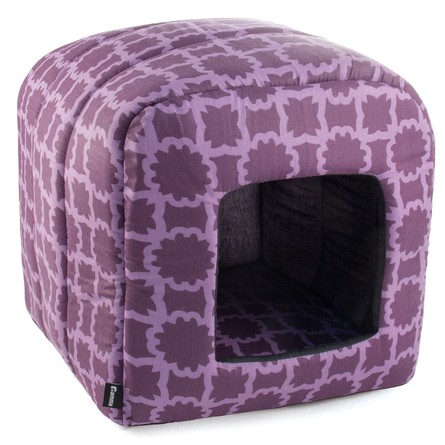 Мягкий стеганный домик из бязи на поролоновой основе. Изделие выполнено в форме куба с длиной грани 34 см. При этом углы изделия "сглажены", а вход остается квадратным. Мягкий и легкий, такой домик легко стирается в обычной стиральной машине. Расцветки представлены в широком ассортименте.