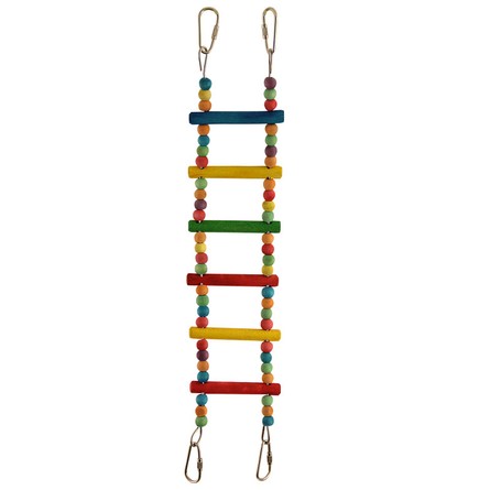 Игрушка для птиц в виде деревянной разноцветной лестницы и бус. Крепление: 4 карабина. Цвет: в ассортименте. Размер: 280*75мм.