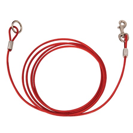 Надежный привязочный трос для собак, оснащенный карабином и кольцом. Заключённый в пластиковую оплётку, он прослужит вам максимально долго. Удобный карабин обеспечит быстрое закрепление троса на выбранной для охраны территории, а кольцо легко зафиксируется на вбитом в землю штопор-держателе или импровизированному столбике. Максимальный вес животного: 25 кг. Размер изделия: 3000*5мм.