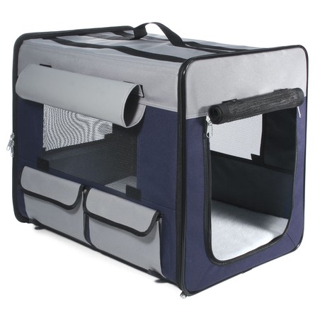 Удобный складной матерчатый тент - универсальное решение для владельцев собак. Его можно использовать как на улице, так и в помещении в качестве основного места для собаки. Незаменимым атрибутом дом-тент является для владельцев собак на выставках и при перевозке во время длительных путешествий. Удобный, легкий, устойчивый, вместительный и функциональный, он позволяет обеспечить животному максимально комфортные условия содержания. Тент имеет прорезиненные сетчатые окна со шторками и удобный матрас, утепленный искусственным мехом с одной стороны (зимний вариант) и с тонким покрытием с другой (летний вариант). Тентовое покрытие изготовлено из прочного синтетического экоматериала, а сама конструкция, укрепленная металлическим каркасом, легко складывается в удобную сумку, не занимая много места. Цвет: серо-синий. Размер: 965х660х735мм.