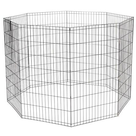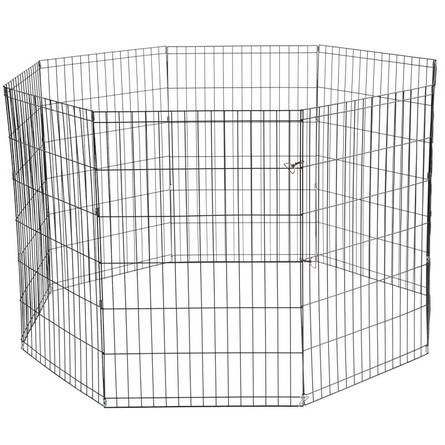 Вольер эмалированный для животных. Размер между прутьями 37,9мм. В комплекте 8 секций. Секции соединены между собой при помощи металлических скоб. Предназначен для кошек, собак, кроликов и других животных. Вольер идеально подходит для отдыха на природе и ограничения передвижения по квартире. Цвет прутьев: черный. Размер одной секции: 610*915мм.