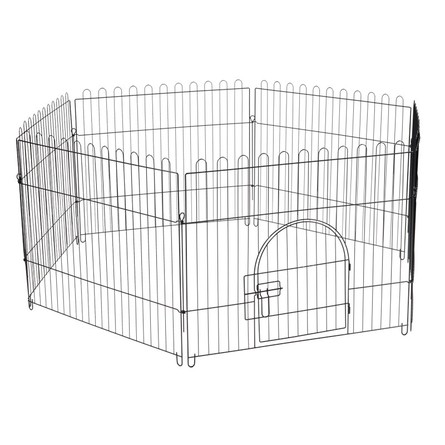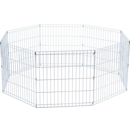 Предназначен для кошек, собак, кроликов и других некрупных животных. В комплекте 8 металлических секций, 20 креплений. Возможность установки дополнительных секций. Размер одной секции: 360*360мм.