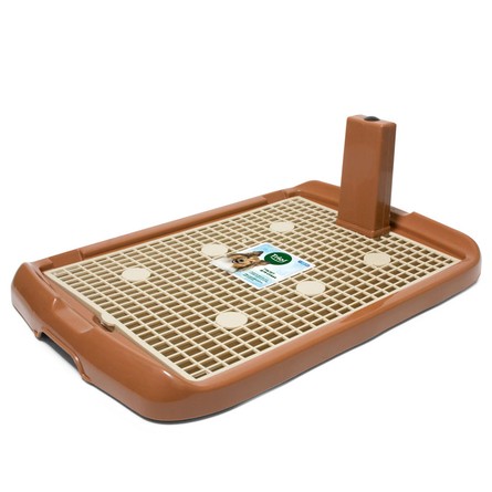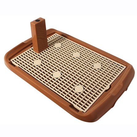 Туалет для маленьких собак, прямоугольный со столбиком. Съемный коврик позволит лапкам вашего питомца оставаться сухими. Цвет: коричневый. Размер: 600*400*40мм; высота столбика: 165мм; размер ячейки сетки: 19*11мм.