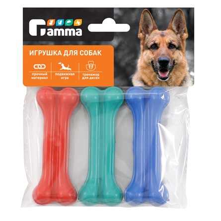 Игрушка в виде косточки выполнена из литого каучука, который не только мягкий, но и очень прочный. Такая игрушка помогает развивать крепкие и здоровые зубы, улучшает эластичность десен, укрепляет стенки ротовой полости и помогает вашему питомцу проводить время с пользой в интересной игре. Комплектация товара включает 3 косточки разных цветов размером 28х22х75 мм каждая. Варианты расцветок: зеленый, голубой, красный, фиолетовый, синий, бирюзовый, серый, салатовый.