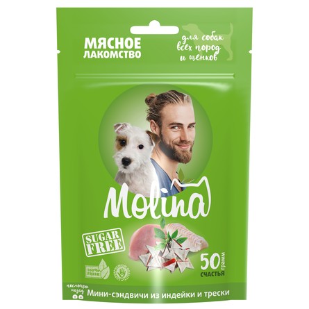 MOLINA, Лакомство для собак всех пород и щенков, Мини-сэндвичи из индейки и трески, 50 г, 4924