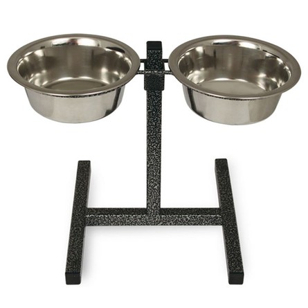 Стойка с регулировкой высоты мисок 15-50см., покрыта методом порошковой окраски, цвет серый металлик. Комплектность: основание, штанга, кольца, 2 миски, фурнитура.