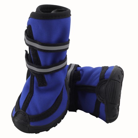 Стильный комплект ботинок для собак из неопрена с функциональной прорезиненной подошвой - незаменимый аксессуар индивидуальной защиты лап животного от воздействия агрессивных жидкостей, дорожных химреагентов, бензинов и масел на проезжей части дорог. Прочные, комфортные и непромокаемые, они сохраняют лапы собаки чистыми и сухими в ненастную погоду и защищают их от истирания о твердое покрытие при длительных и интенсивных нагрузках. Размер изделия: 45х45х55 мм. Цвет: синий.