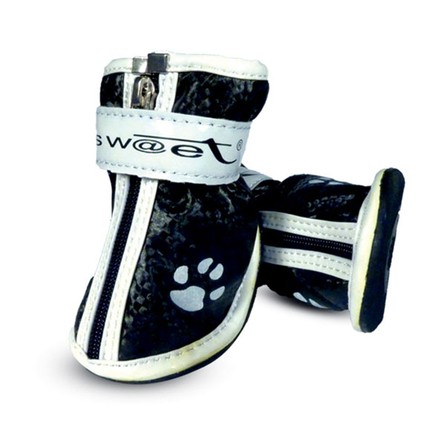 Комплект ботинок для собак с модным принтом и функциональной прорезиненной подошвой - незаменимый аксессуар индивидуальной защиты лап животного от воздействия агрессивных жидкостей, дорожных химреагентов, бензинов и масел на проезжей части дорог. Прочные, комфортные и непромокаемые, они сохраняют лапы собаки чистыми и сухими в ненастную погоду и защищают их от истирания о твердое покрытие при длительных и интенсивных нагрузках. Размер изделия: 45х40х50 мм. Цвет: черный.