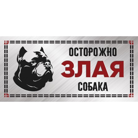 Табличка "Злая собака", силуэт, питбуль, 250*114мм