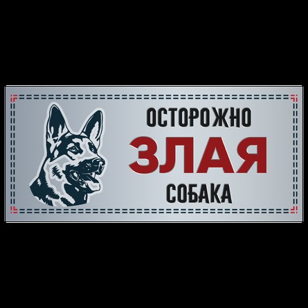 Табличка "Злая собака" силуэт, немецкая овчарка, 250*114мм