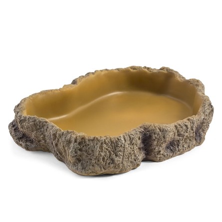 Глубокая и тяжелая кормушка-поилка для рептилий из полиэфирной смолы. Имитация природного камня. Можно использовать в любых террариумах.
