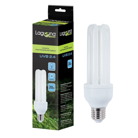 Ультрафиолетовые лампы Laguna являются модификацией люминесцентных ламп со встроенным в корпус электронным пускорегулирующим устройством. Ультрафиолетовые лампы являются источником света с идеальным спектром для любых видов птиц, амфибий, змей и комнатных растений, при этом во время работы лампы выделяется небольшое количество тепла. Лампы Laguna - источник ультрафиолетовых лучей типа А и В. В спектре излучения лампы лучей В-типа содержится 2,4%. Ультрафиолетовые лучи А-типа стимулируют аппетит, активность и размножение. Ультрафиолетовые лучи В-типа регулируют метаболизм и кальциевый обмен, а также выработку организмом витамина D.