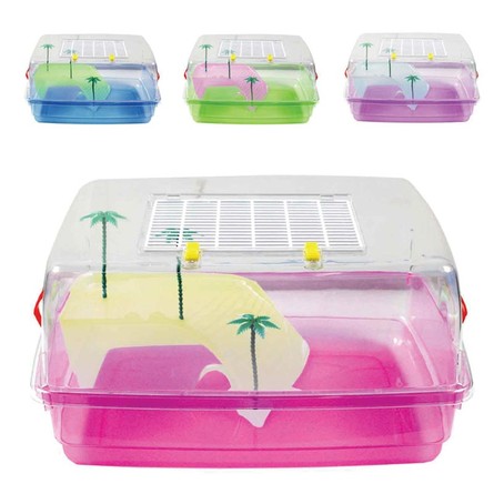 Легкий и удобный пластиковый террариум используется для содержания маленьких красноухих черепах. Пластиковые детали террариума легко моются и дезинфицируются. Цвет дна: розовый, зеленый, синий. Размер: 430*220*340мм.