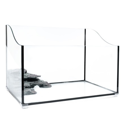 Открытый акватеррариум из силикатного стекла с системой слива воды. Подходит для содержания водных видов черепах и использования в качестве палюдариума.
