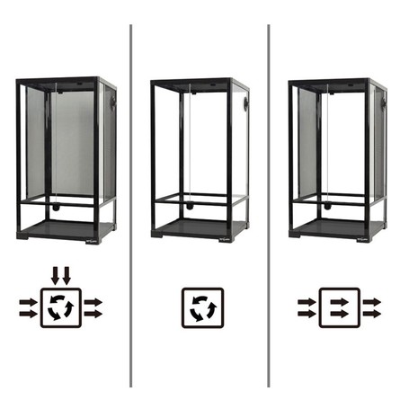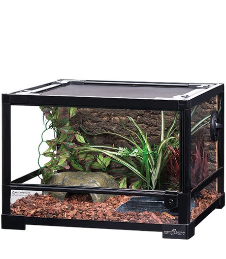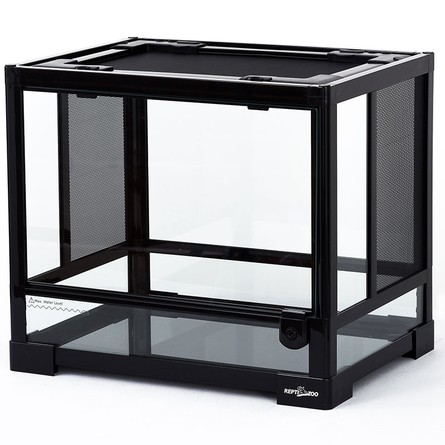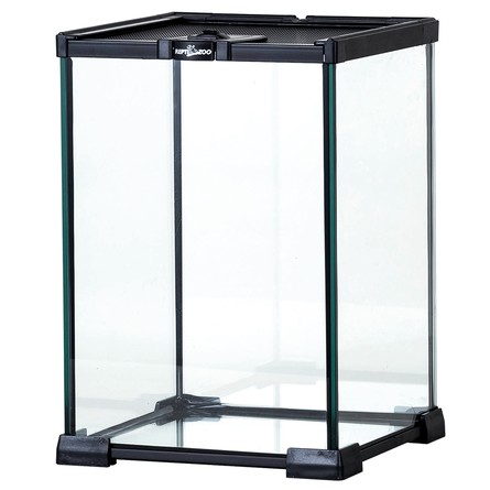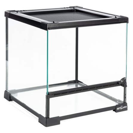 Мини-террариумы из силикатного стекла подходят для содержания насекомых, членистоногих, амфибий и молодняка рептилий. Верхняя металлическая сетка с механическим замком используется в качестве дверцы. С помощью направляющих в верхней и нижней части несколько мини-террариумов можно поставить один на другой.