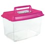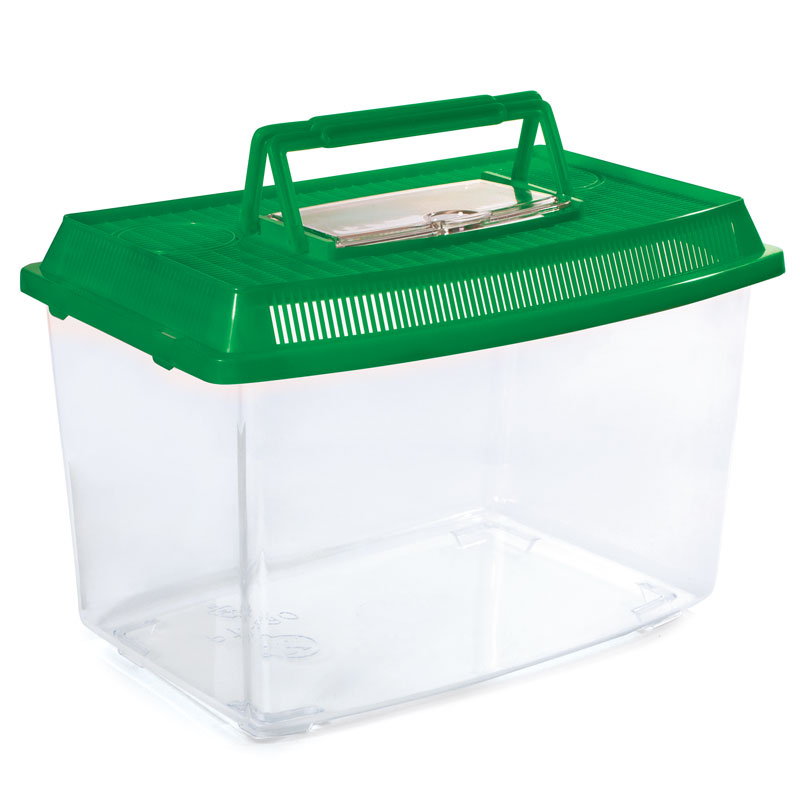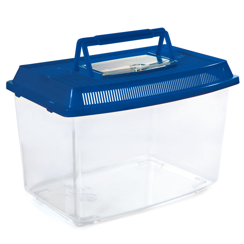 Аквариум-переноска подходит для временного содержания и транспортировки рыб, рептилий, мелких животных, беспозвоночных, амфибий, насекомых и др. Легкий в использовании, универсальный аквариум-переноска изготовлен из нетоксичного высококачественного пластика. Контейнер оснащен вентилируемой крышкой с прозрачной откидной дверцей. Переноска легко моется и дезинфицируется. Варианты расцветок в коробе - синий, зеленый, красный, розовый. Размер: 300*195*200мм.