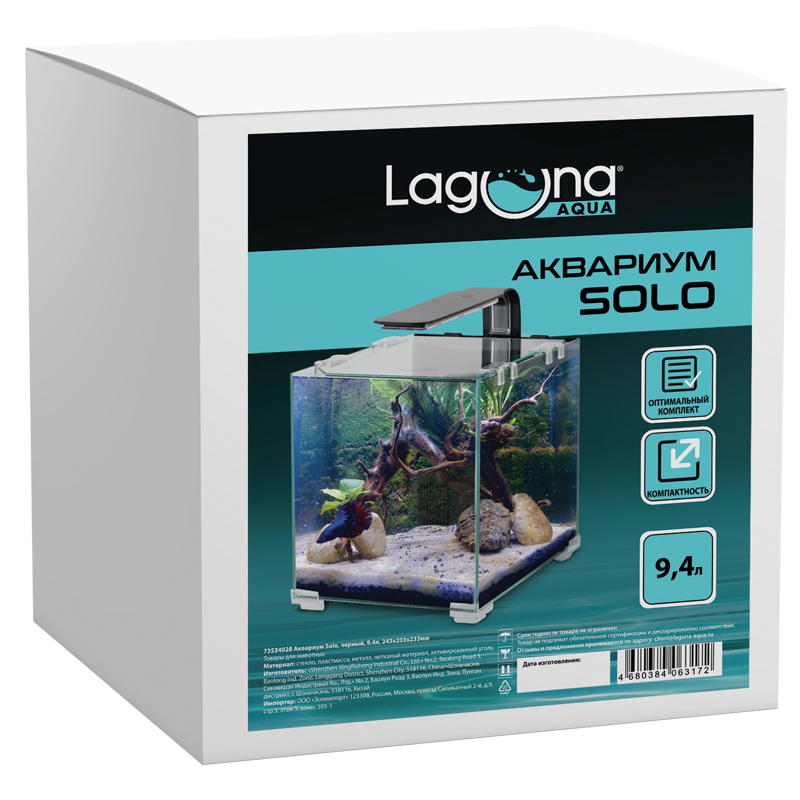 Аквариум Solo, черный, 9,4л, 243*203*233мм, Laguna