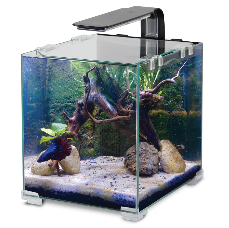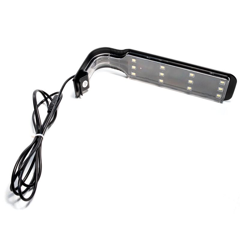Аквариум из прозрачного стекла 9,4л. В комплекте покровное стекло. Аквариум укомплектован светодиодным светильником 2,4Вт, а также помпой 12В, 2,8Вт, 180л/ч и фильтрующим картриджем. Цвет светодиодов - белый.