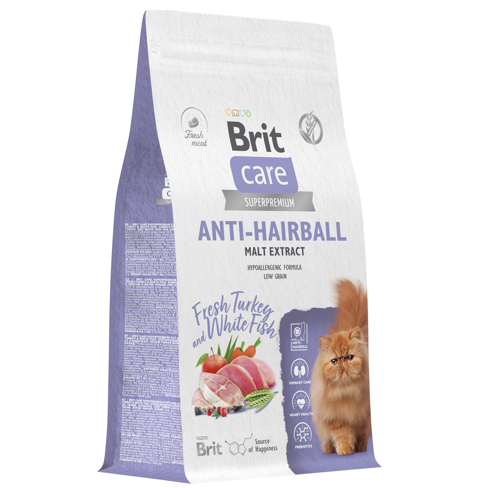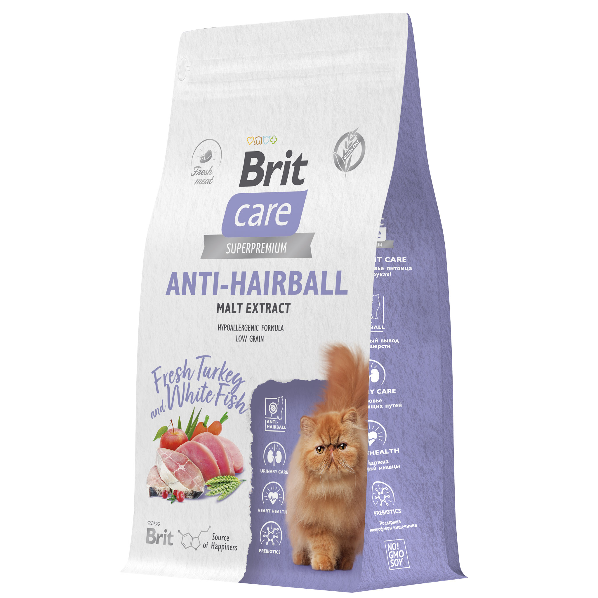 BRIT CARE, Сухой корм с белой рыбой и индейкой для взр.кошек "Cat Anti-Hairball ", 1.5 кг, 5066261