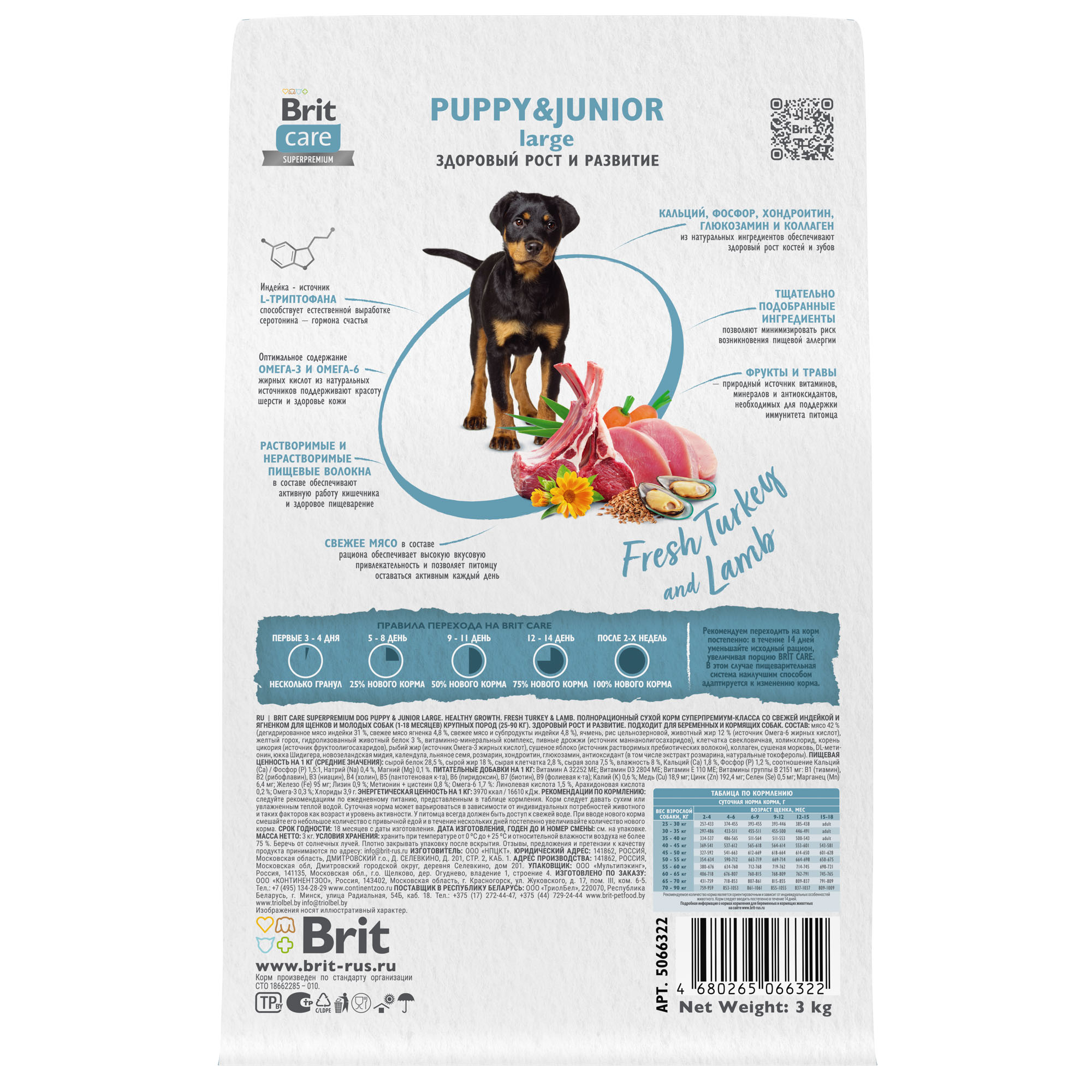 BRIT CARE, Сухой корм с инд и ягн д/щенк.кр.пор."Dog Puppy&Junior L Healthy Growth", 3 кг, 5066322