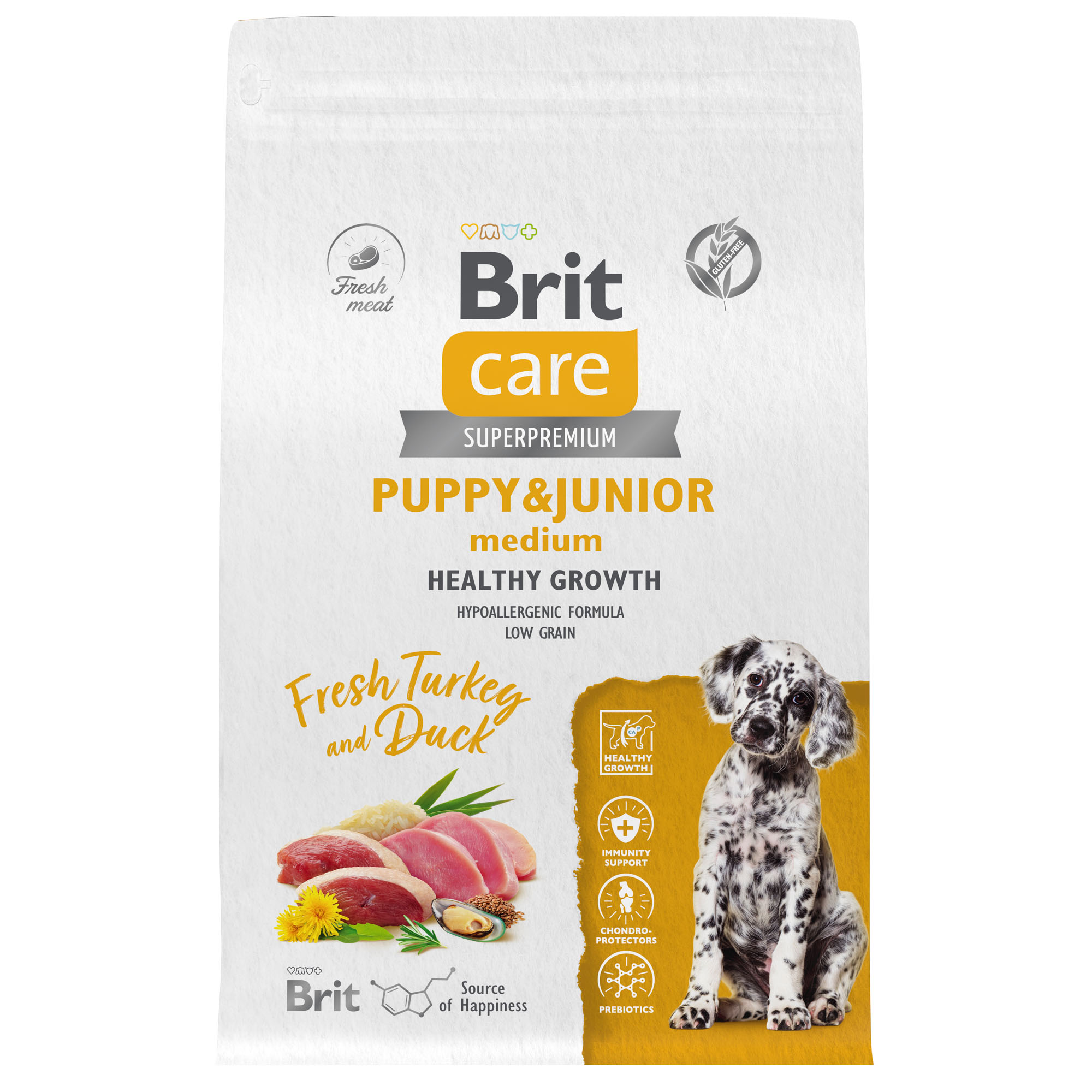 BRIT CARE, Сухой корм с инд и уткой д/щенк.ср.пор."Dog Puppy&Junior M Healthy Growth", 3 кг, 5066292
