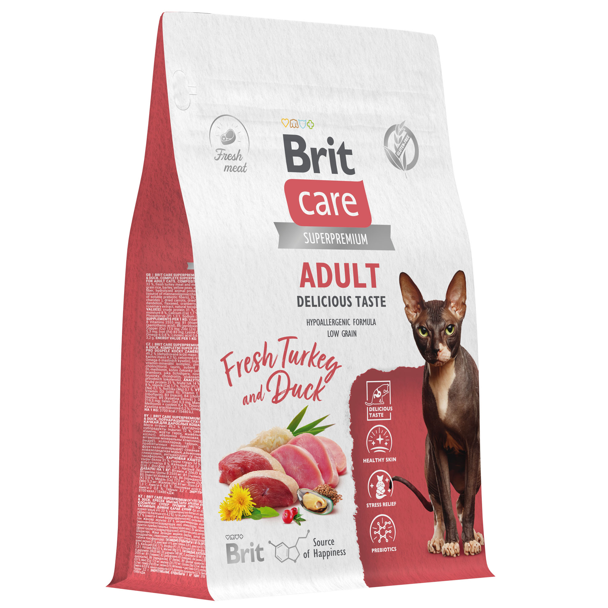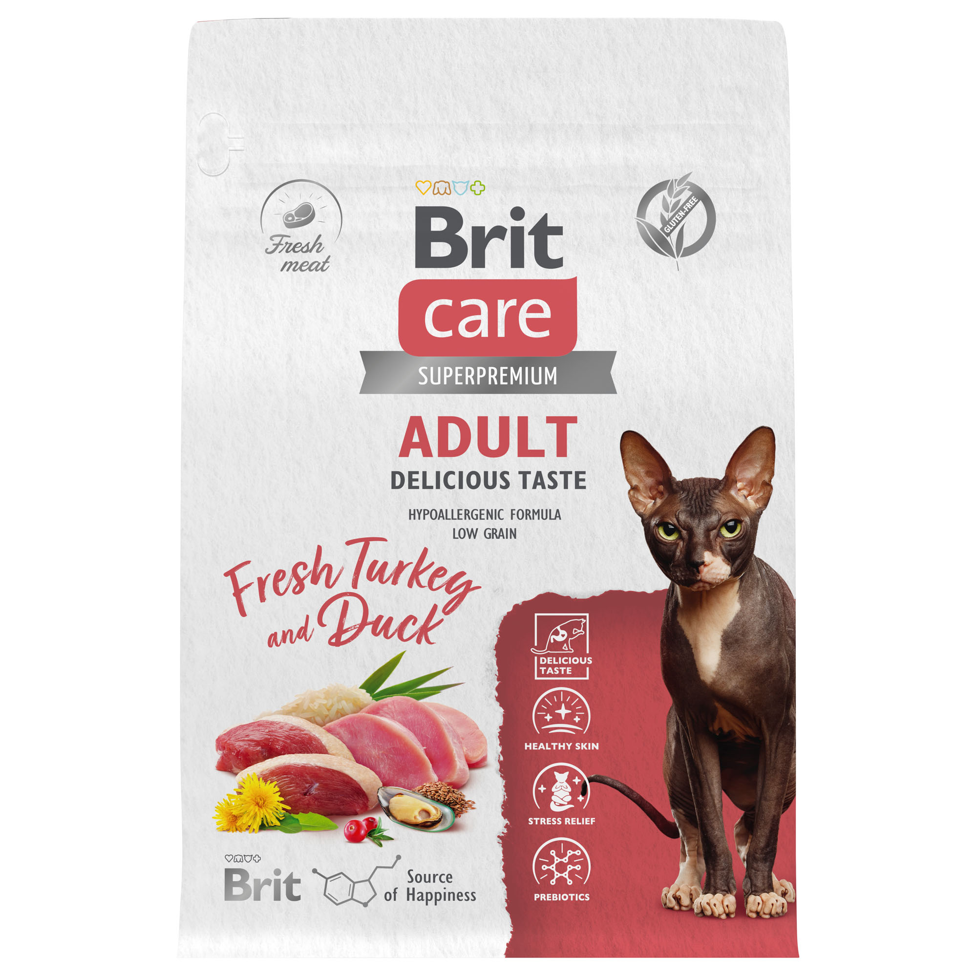 BRIT CARE, Сухой корм с инд. и уткой д/взр.прив.кошек "Cat Adult Delicious Taste", 0.4 кг, 5066070