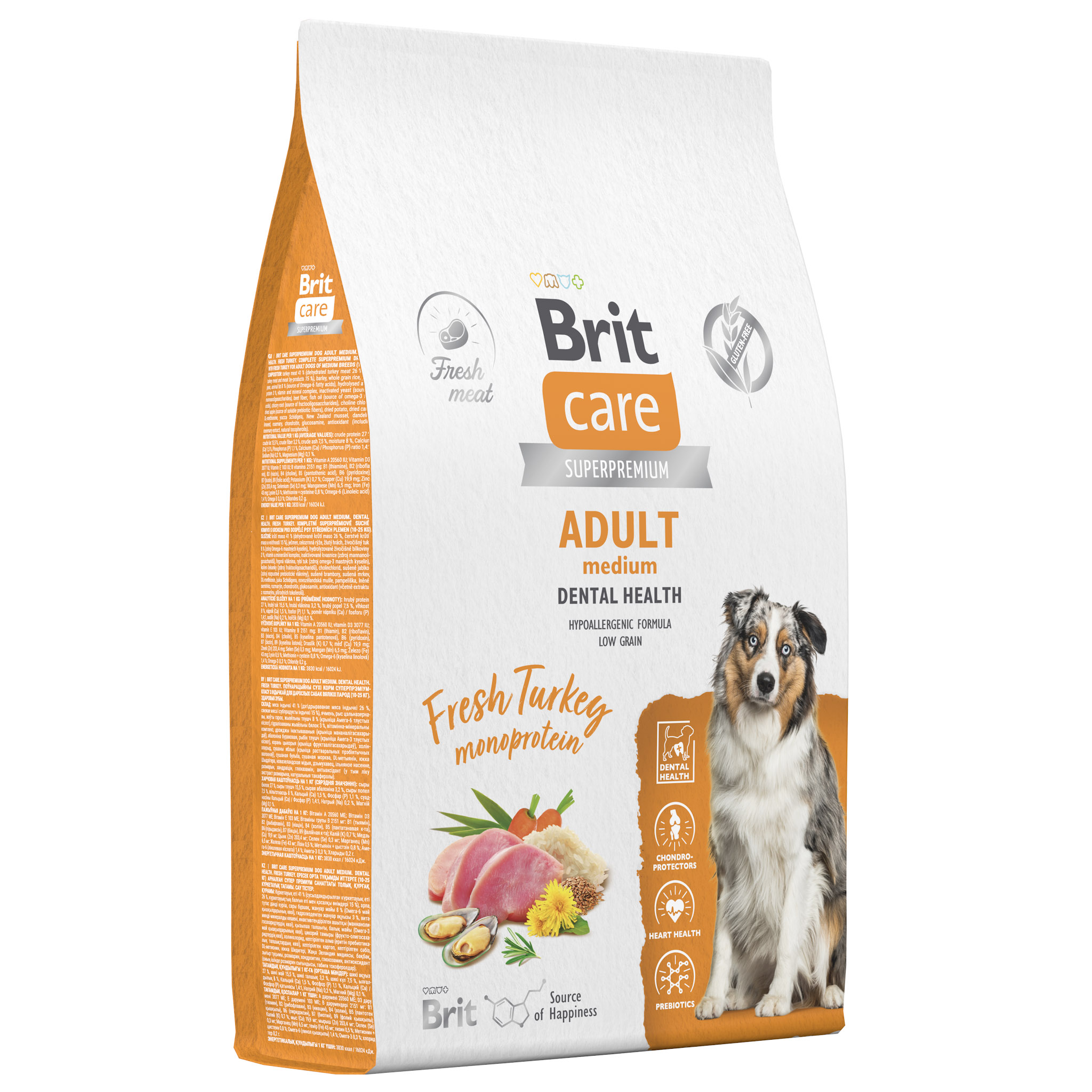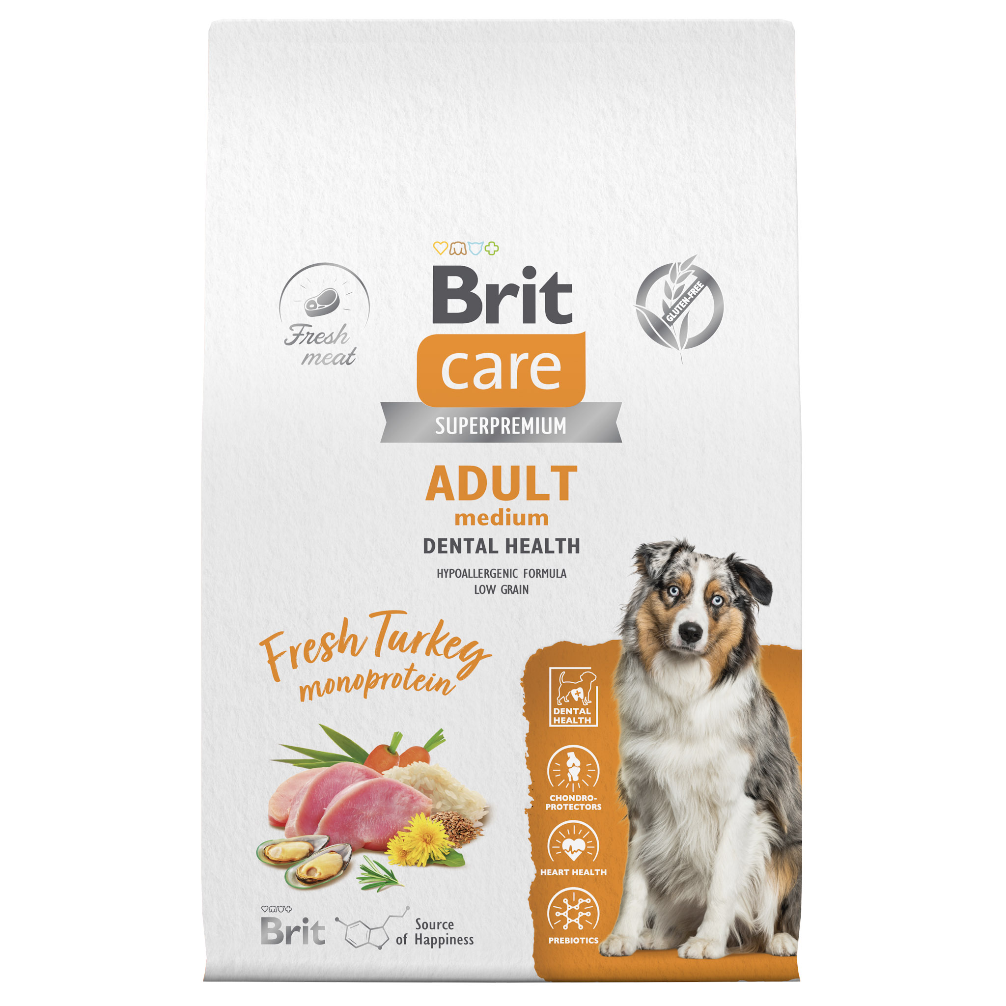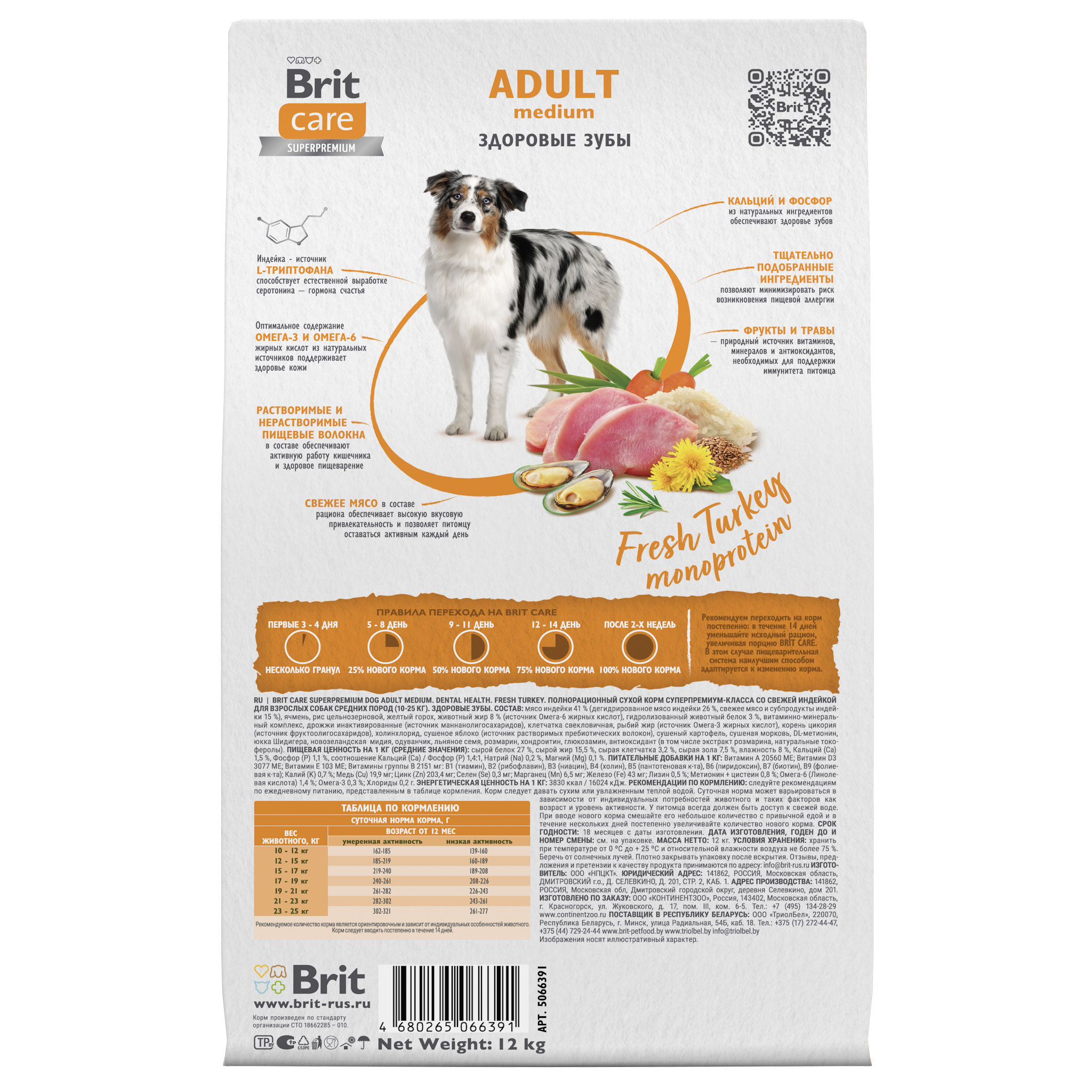 BRIT CARE, Сухой корм с индейкой д/взр.соб. ср. пород "Dog Adult M Dental Health", 12 кг, 5066391