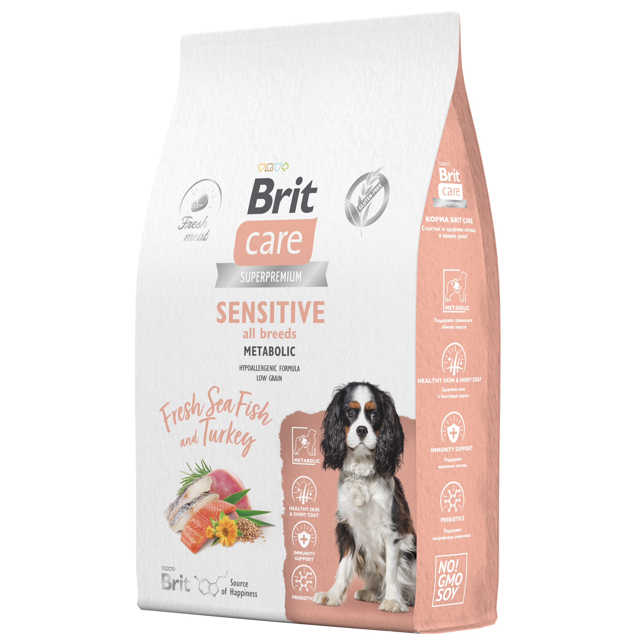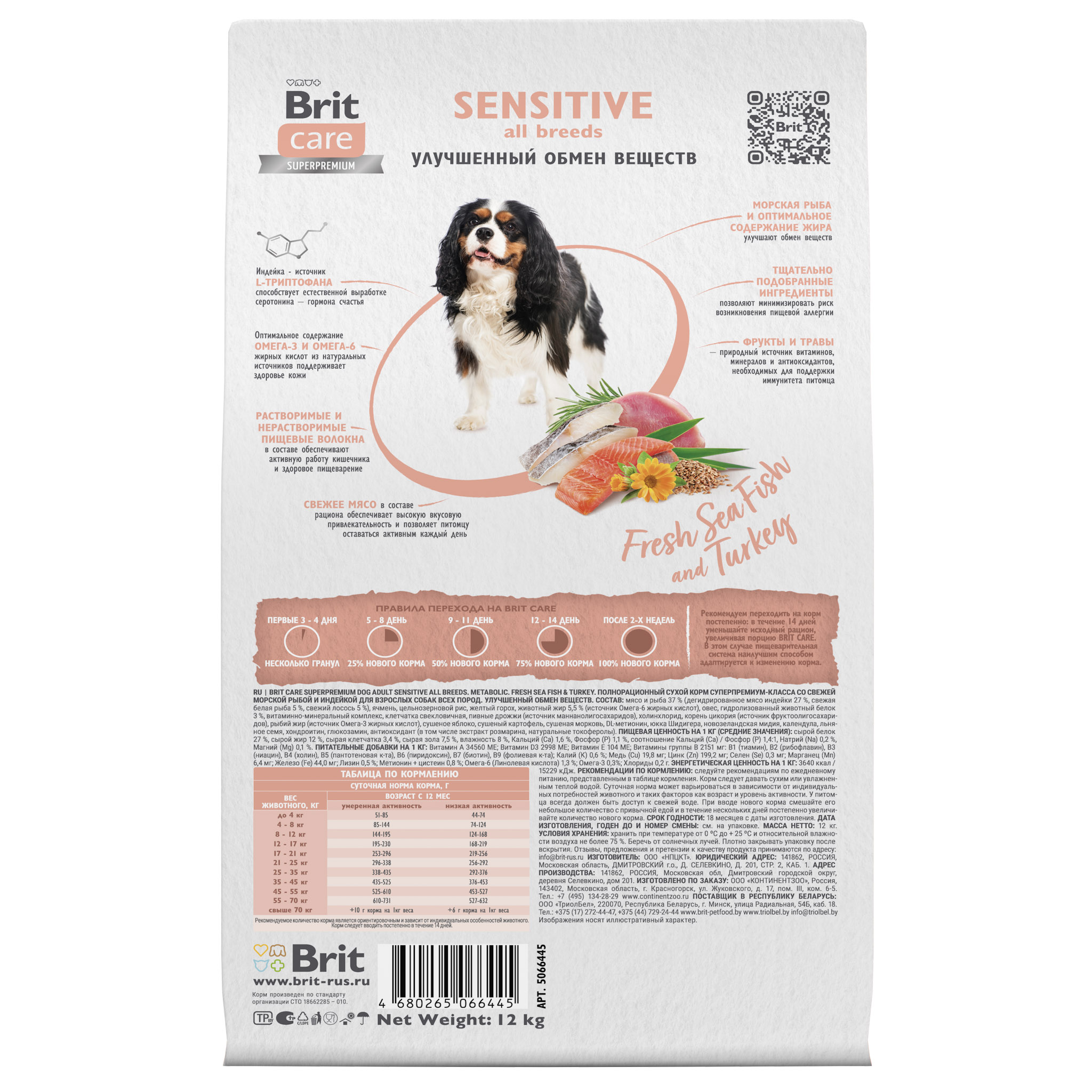 BRIT CARE, Сухой корм с морск.рыбой и инд. д/взр.соб "Dog Adult Sensitive Metabolic", 12 кг, 5066445