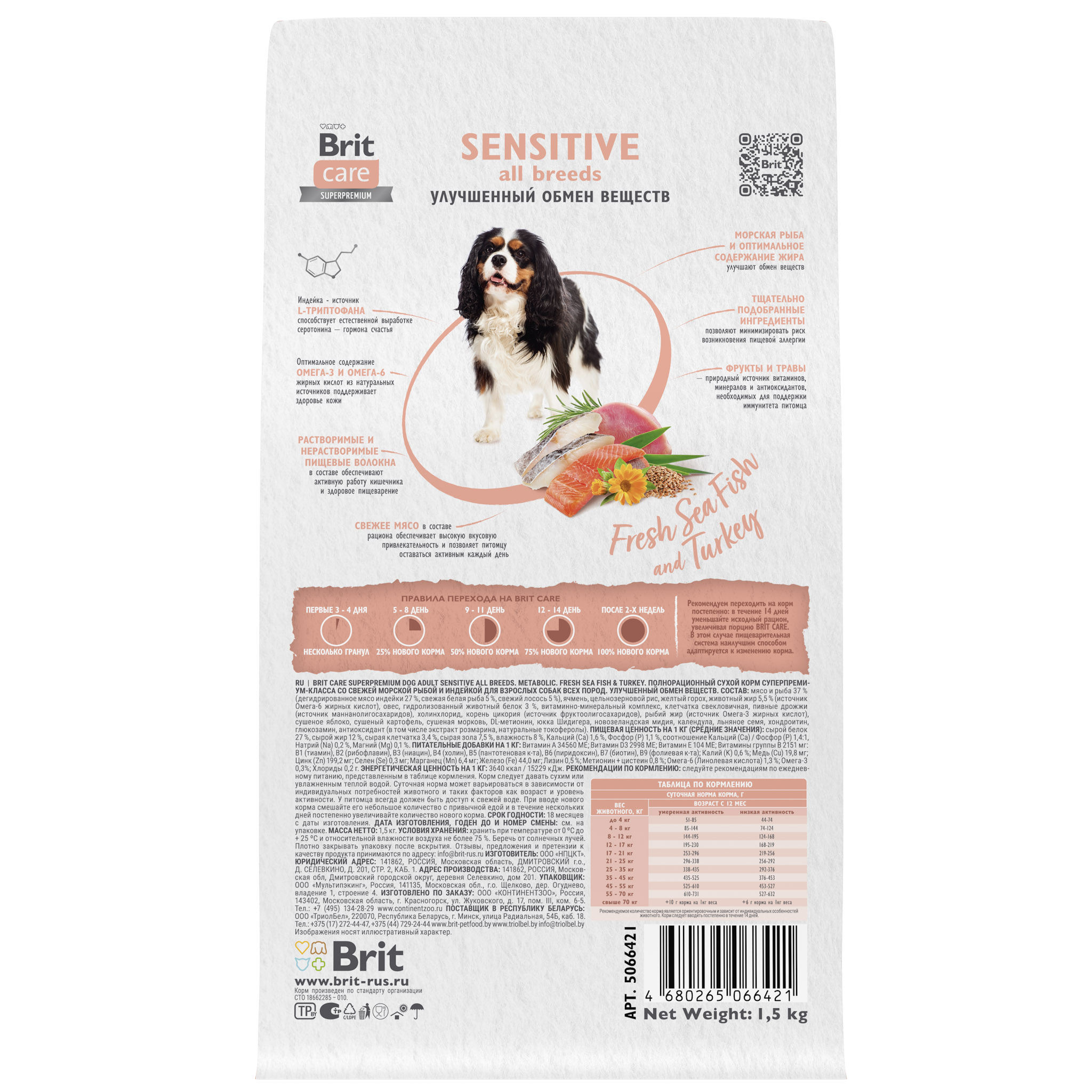 BRIT CARE, Сухой корм с морск.рыбой и инд. д/взр.соб "Dog Adult Sensitive Metabolic", 1.5 кг,5066421