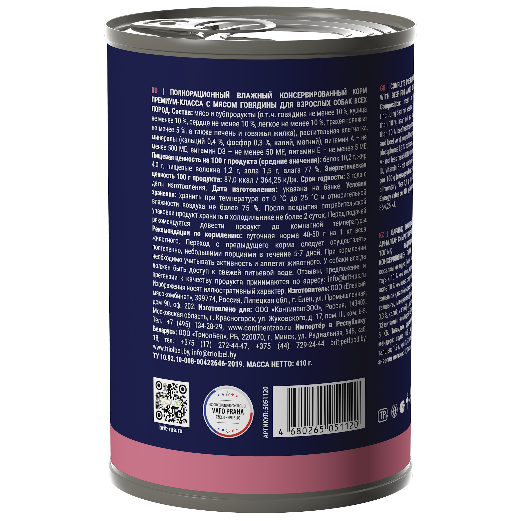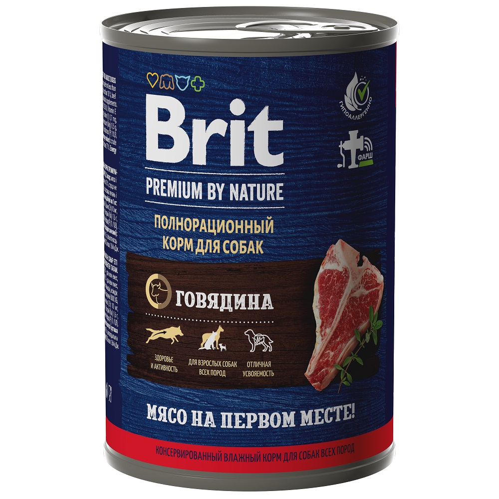 BRIT PREMIUM BY NATURE, Консервы с говядиной для взрослых собак всех пород, 410г, 5051120