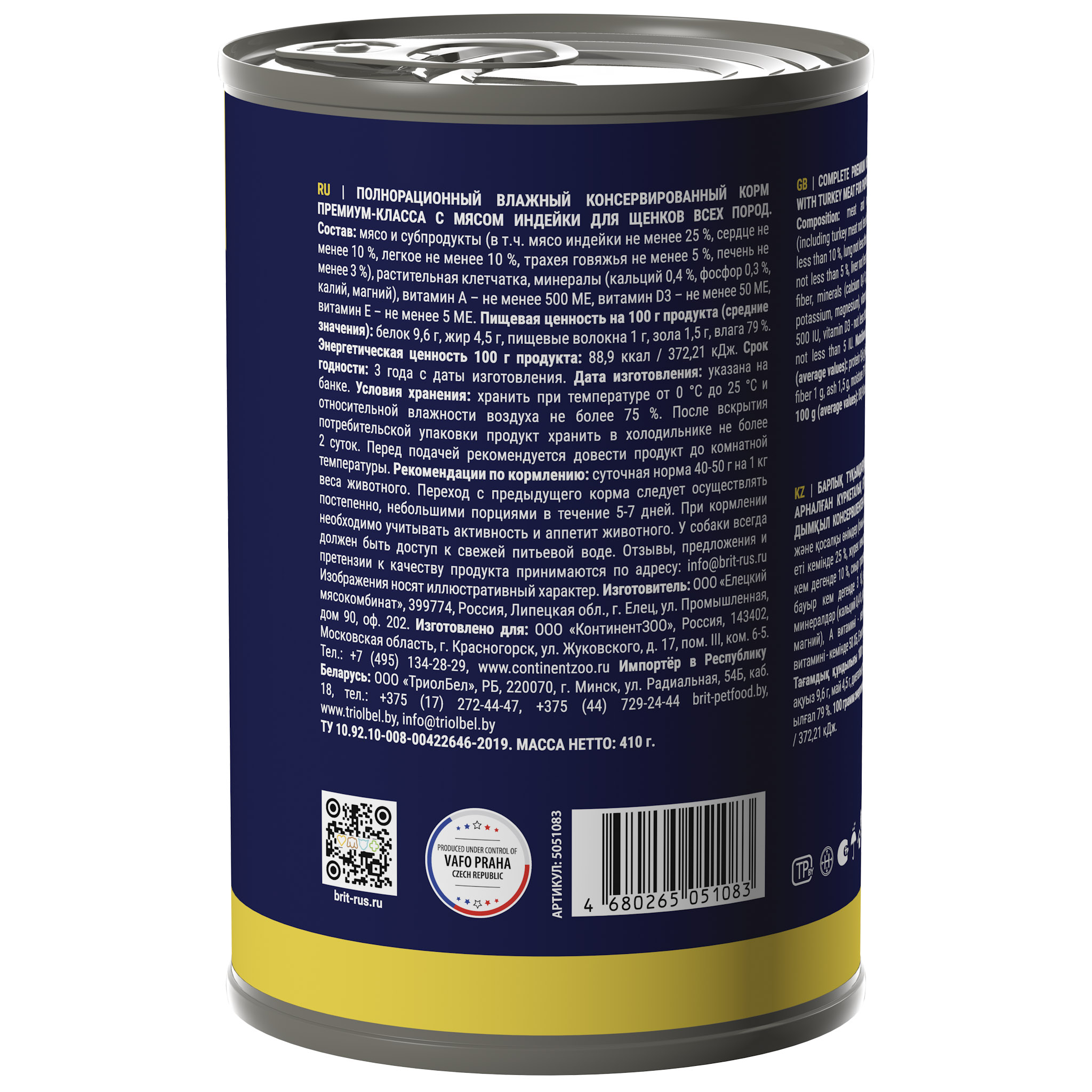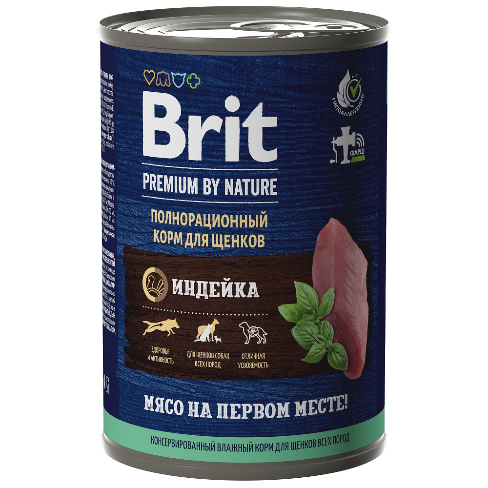BRIT PREMIUM BY NATURE, Консервы с индейкой для щенков всех пород, 410г, 5051083